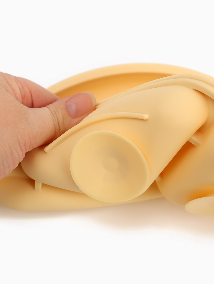 Изделие изготовлено из пищевого силикона — гипоаллергенного, гибкого и прочного материала. Тарелка не содержит бисфенол А (BPA free). Её можно использовать в микроволновой печи и посудомоечной машине. Благодаря износостойкости она устойчива к падениям и деформациям, не впитывает запахи и не окрашивается от пищи. Мягкий материал безопасен для ребёнка, а отсутствие острых краёв исключает риск порезов.