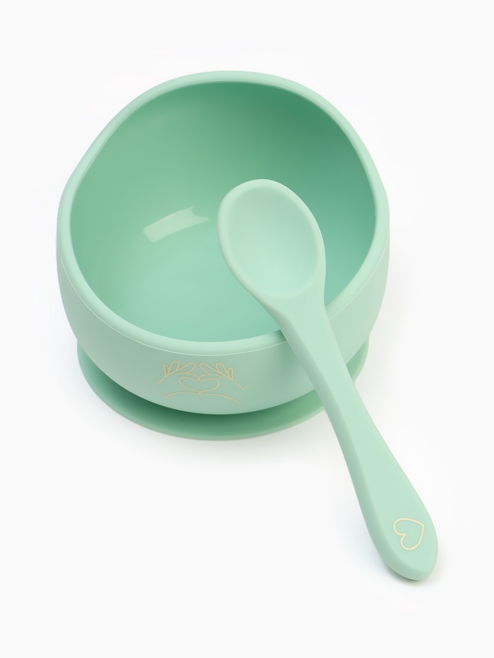 Тарелка детская на присоске и ложка, бирюзовый, Mum&Baby