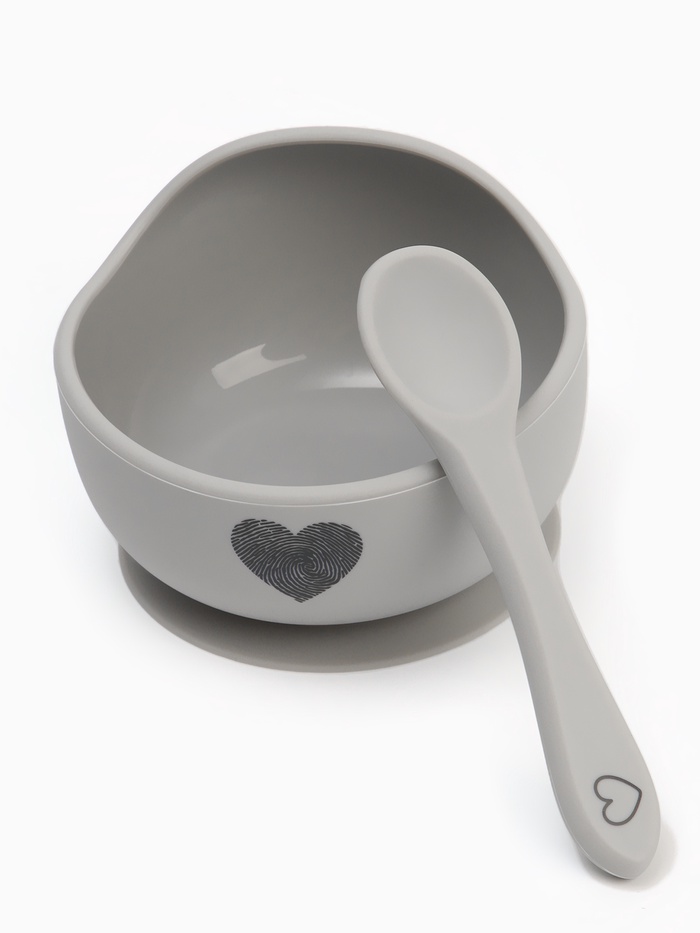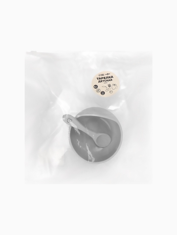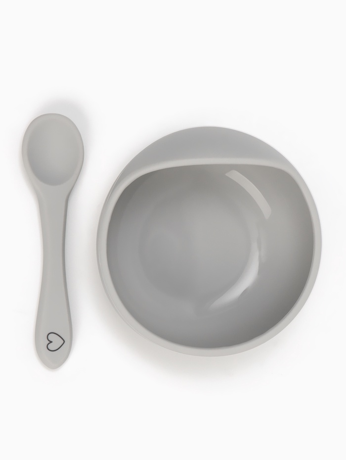 Тарелка детская на присоске и ложка, серый, Mum&Baby