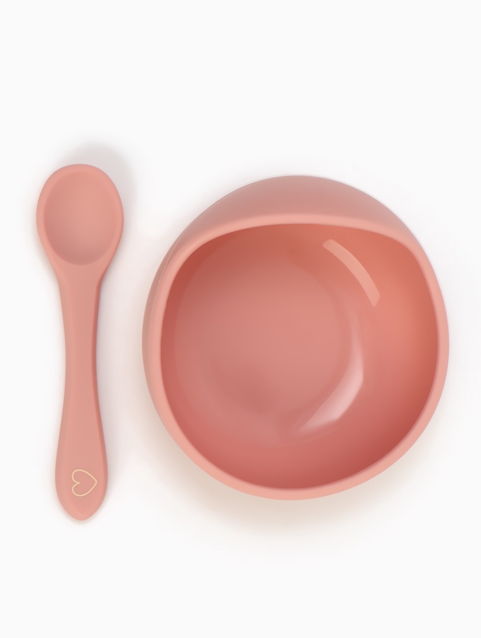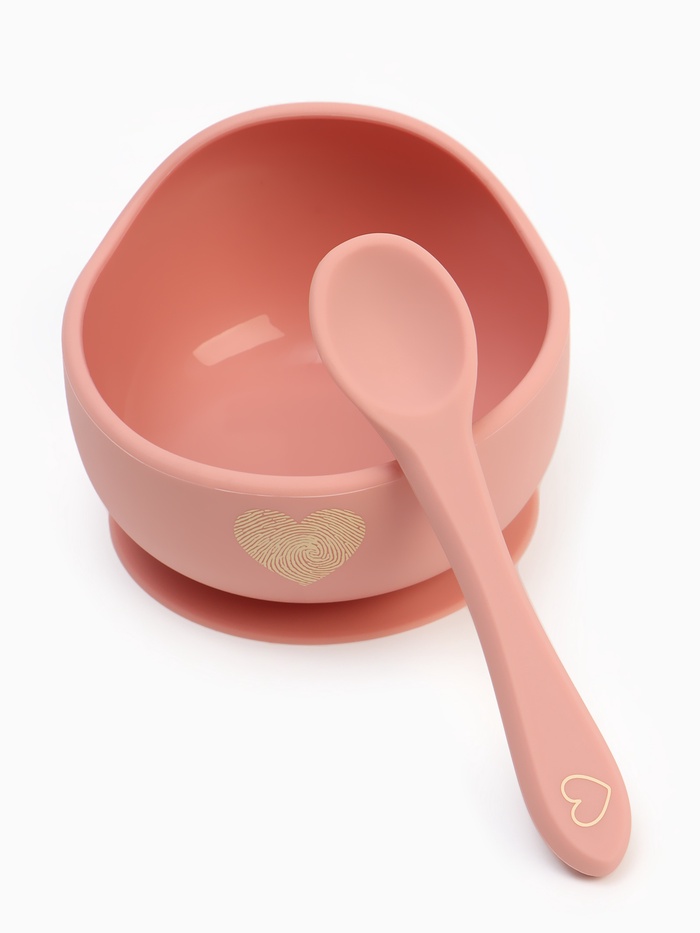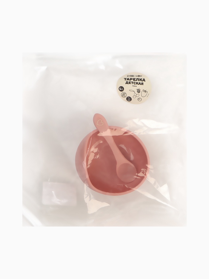 Тарелка детская на присоске и ложка, розовый, Mum&Baby