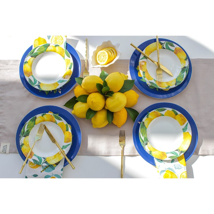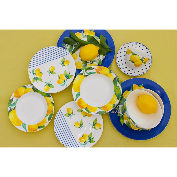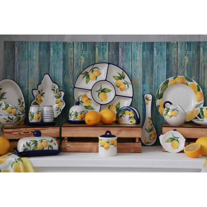 Посуда серии «Лимоны» от торговой марки Доляна изготовлена из качественного доломита. Благодаря оригинальному дизайну, изделия гармонично дополнят сервировку стола, а также прекрасно подойдут в качестве подарка. Посуда выполнена в ярких тонах, что позволит вписать её практически в любой интерьер.