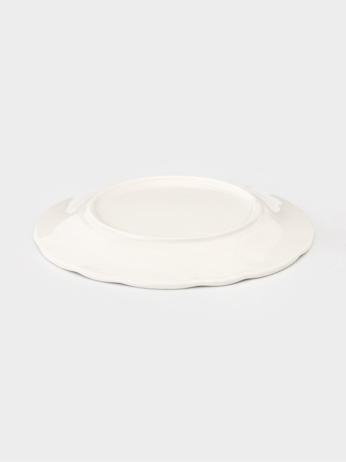 Такую тарелку выбирают, когда хочется добавить в сервировку чуть больше выразительности, но сохранить её спокойной и универсальной. Белый фарфор остаётся уместным в любой обстановке, а рельефный край помогает сделать подачу более аккуратной и эстетичной. Если нужна фарфоровая тарелка с барельефом для дома, ежедневных горячих блюд и красивой повседневной сервировки, этот вариант станет понятным и удачным решением.