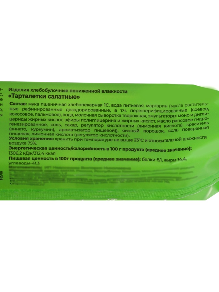 Технические характеристики Тарталетки КарлОн слоеные Салатные 130 гр.; 9 шт.