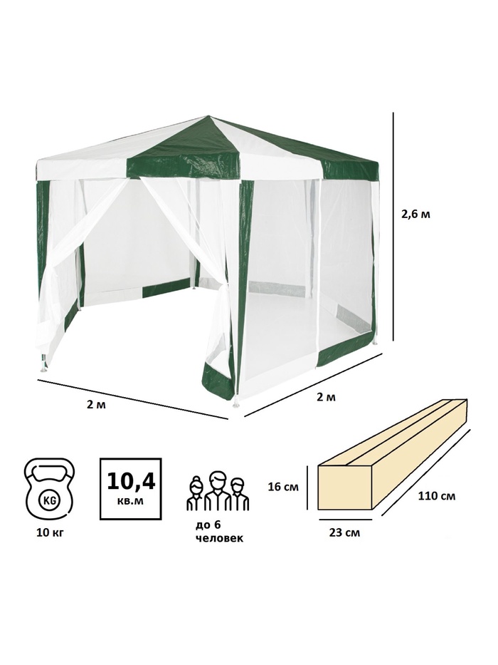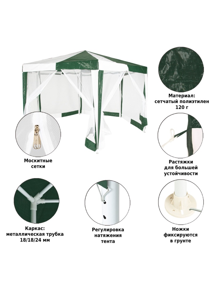 Технические характеристики Тент садовый Green Glade 1001 2х2х2х2,6м полиэтилен