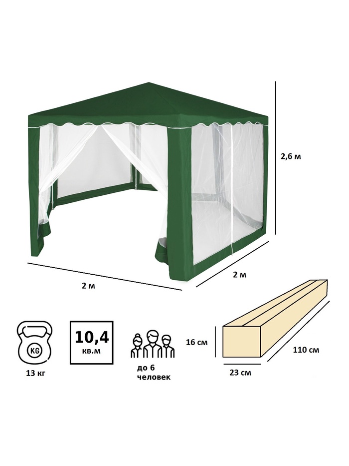 Технические характеристики Тент садовый Green Glade 1003 2х2х2х2,6м полиэстер