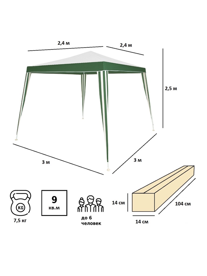 Технические характеристики Тент садовый Green Glade 1017 2,4х2,4м/3х3х2,37м полиэстер