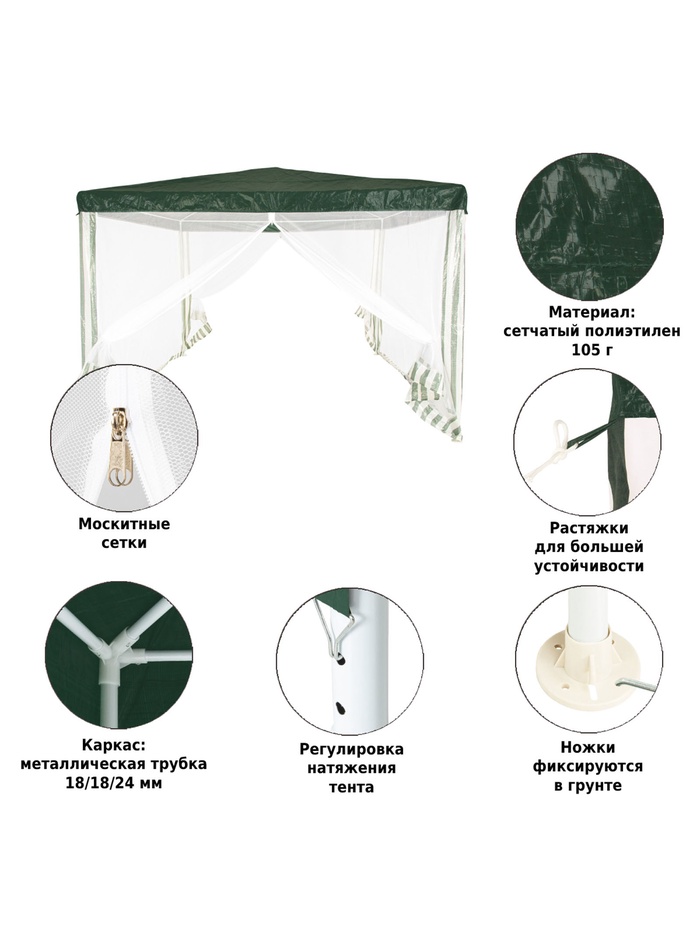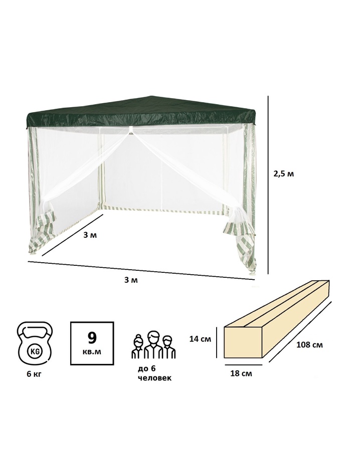 Технические характеристики Тент садовый Green Glade 1028 3х3х2,5м полиэтилен