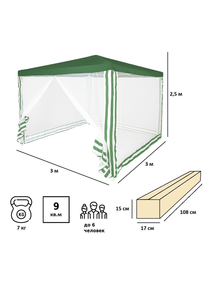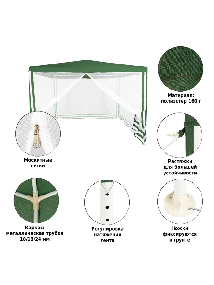 Технические характеристики Тент садовый Green Glade 1036 3х3х2,5м полиэстер
