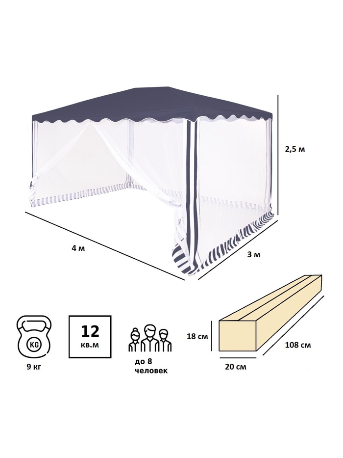 Технические характеристики Тент садовый Green Glade 1038 3х4х2,45м полиэстер