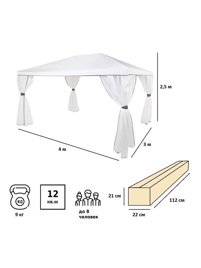 Технические характеристики Тент садовый Green Glade 1050 3х4х2,5м полиэстер