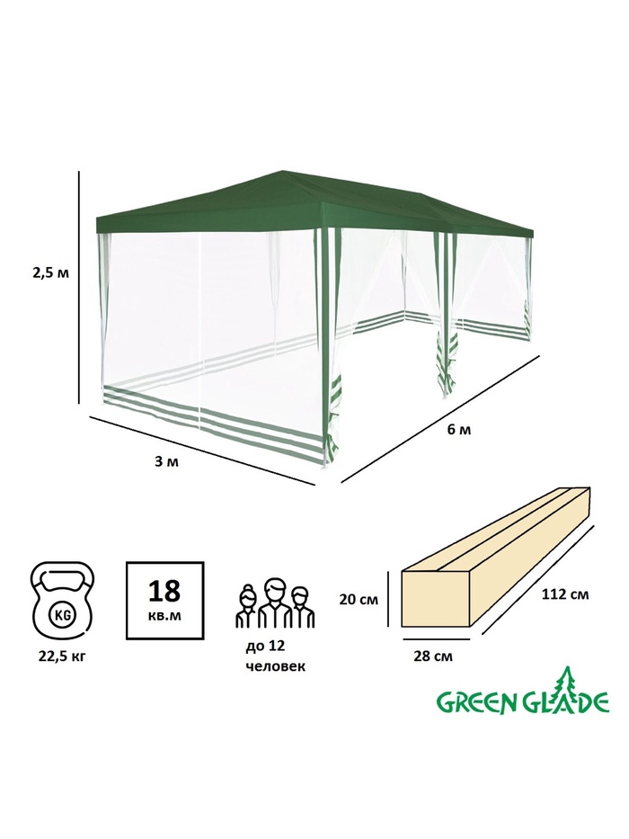 Технические характеристики Тент садовый Green Glade 1056 3х6х2,5м полиэстер