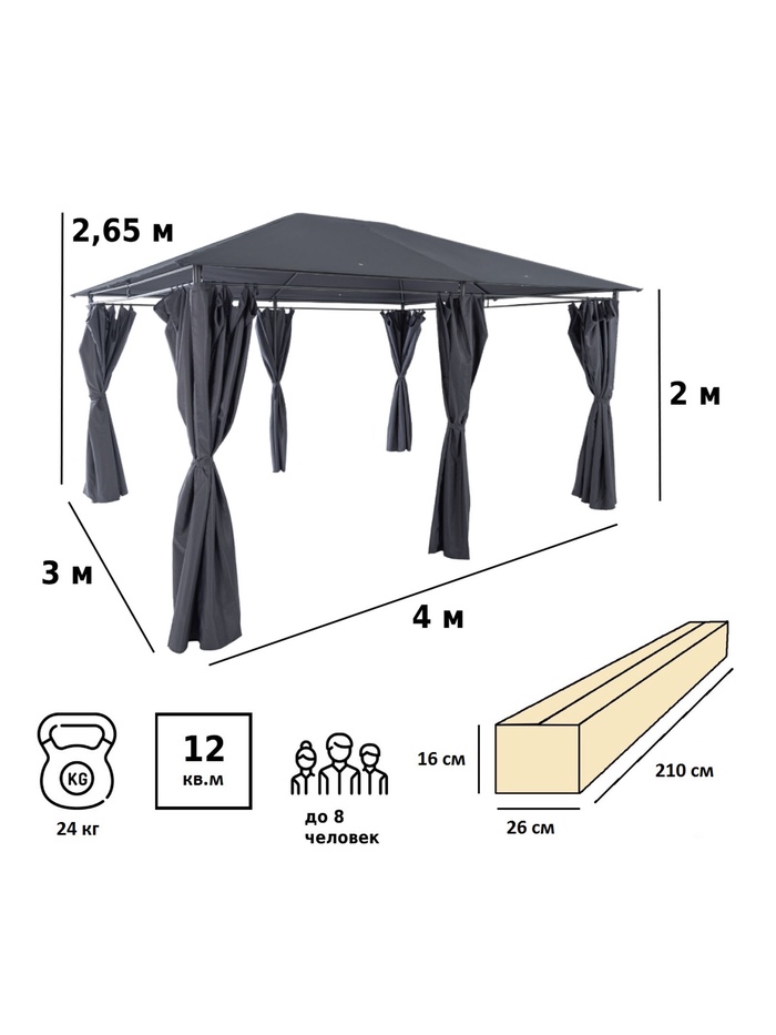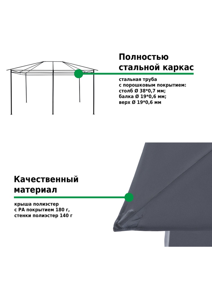 Технические характеристики Тент садовый Green Glade 1149 3х4х2,65/2 м полиэстер