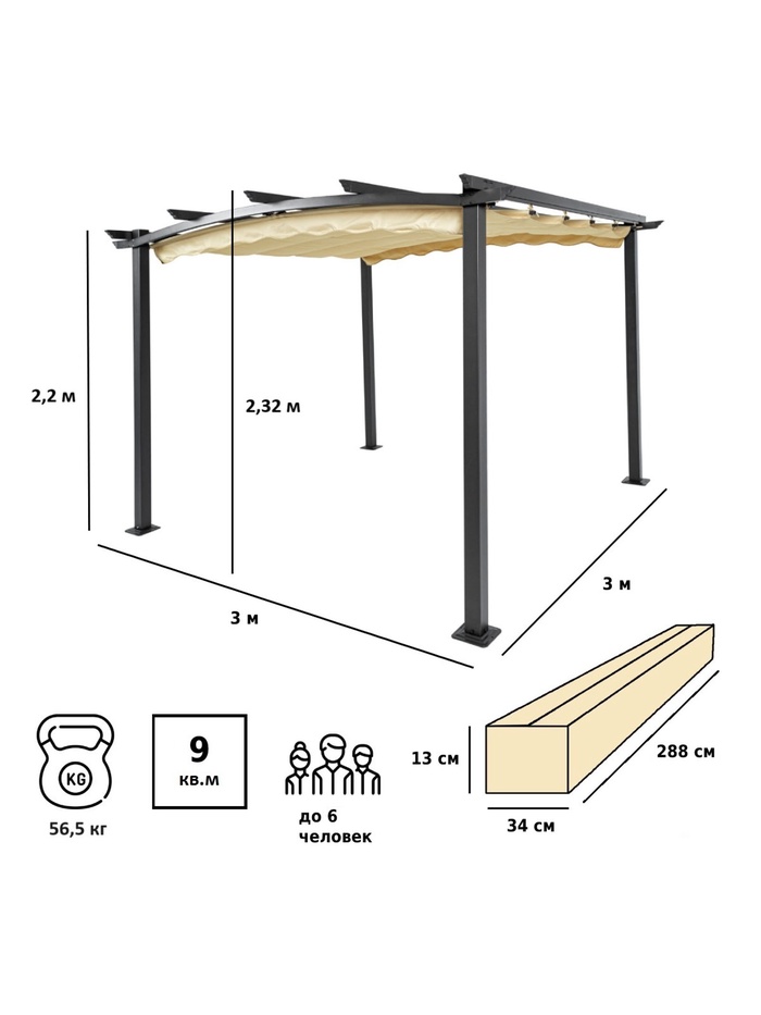 Технические характеристики Тент садовый Green Glade 1152 3х3 м полиэстер