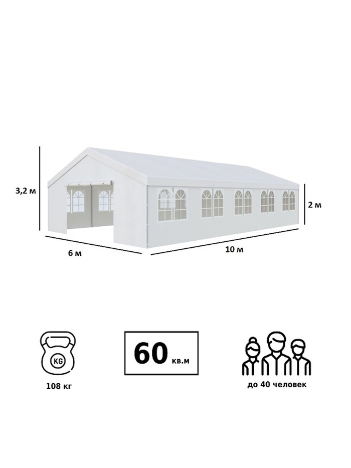 Технические характеристики Тент садовый Green Glade 3019 6x10x3.2/2м полиэстер (4 коробки)