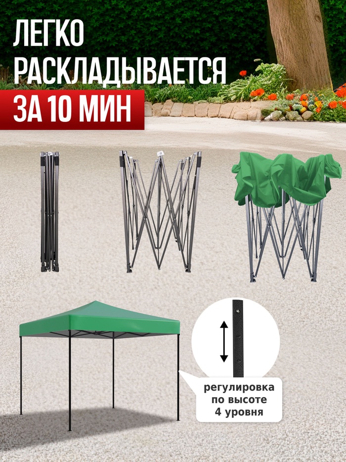 Технические характеристики Тент садовый Helex 23001 3х3м зелёный