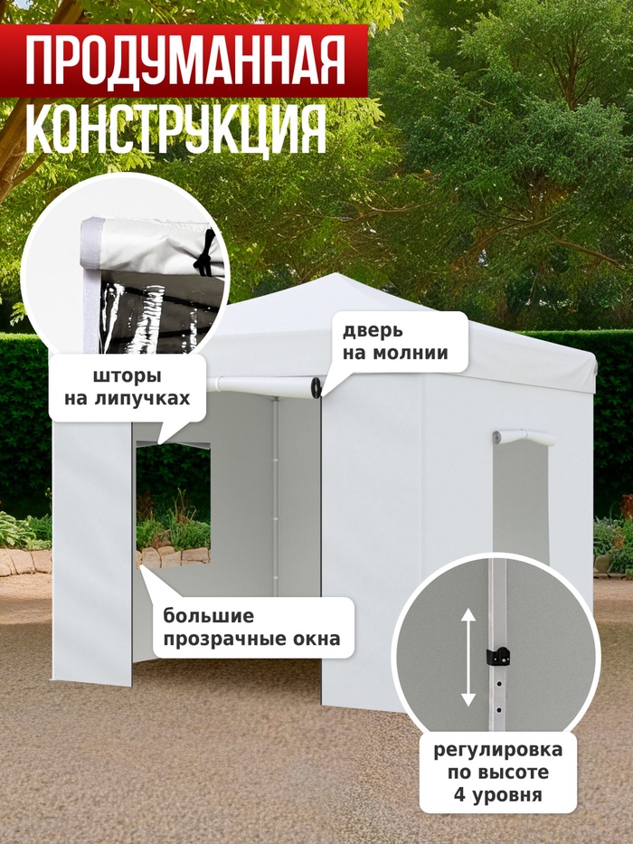 Технические характеристики Тент садовый Helex 24330 3x3х3м полиэстер белый