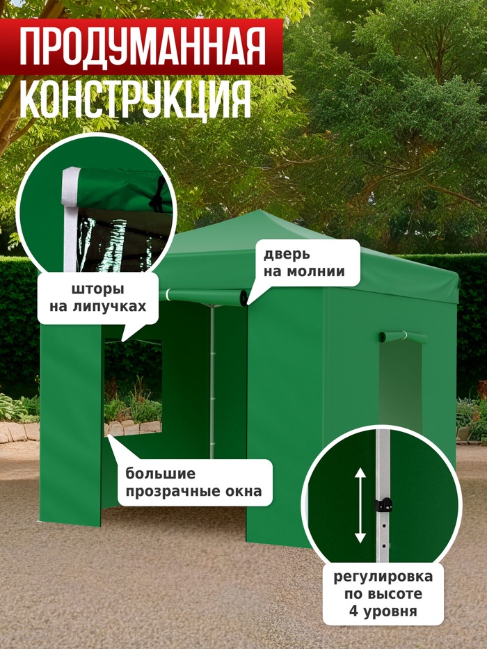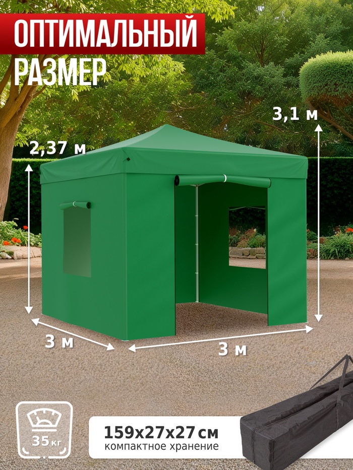 Технические характеристики Тент садовый Helex 24331 3x3х3м полиэстер зеленый