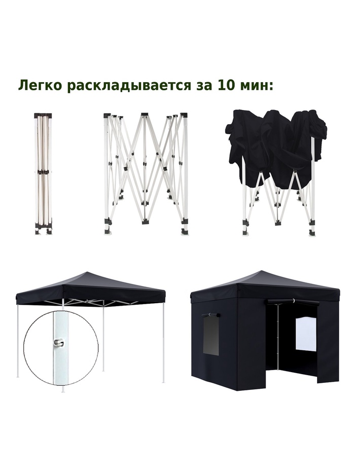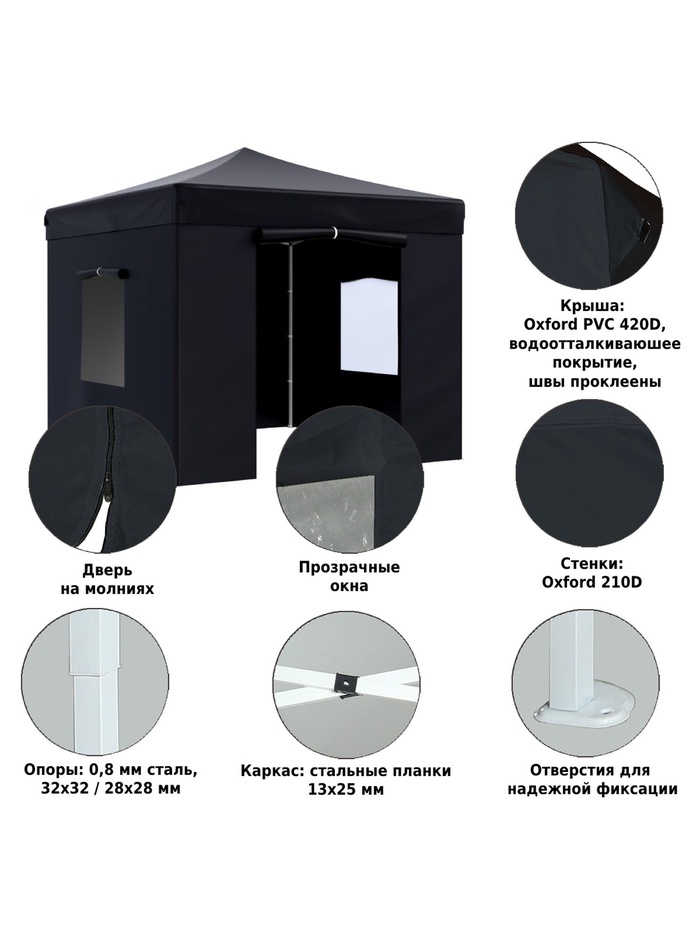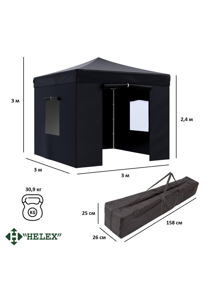 Технические характеристики Тент садовый Helex 4332 3x3х3м полиэстер черный
