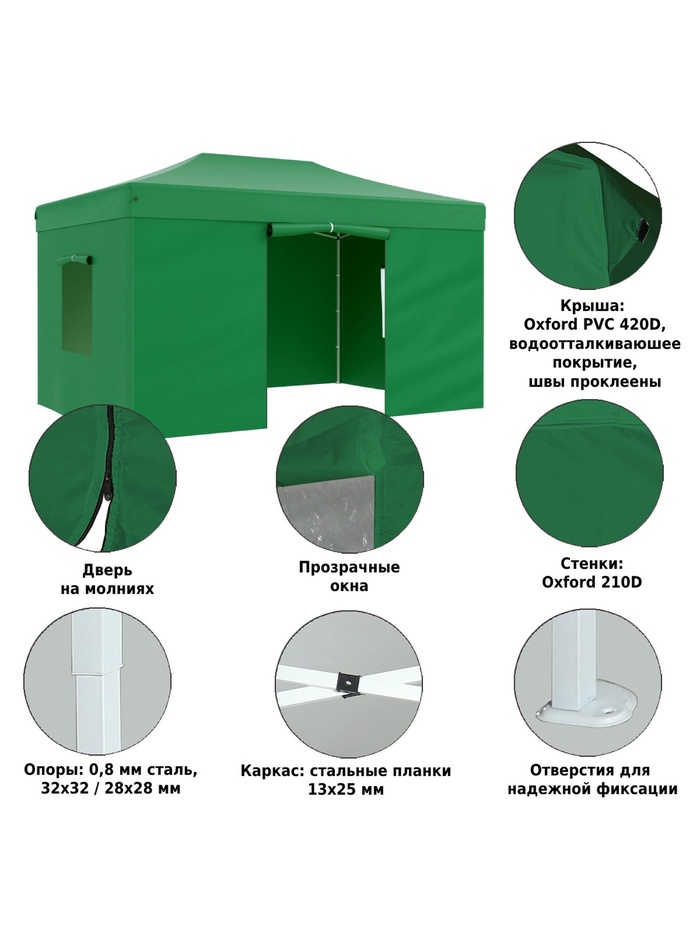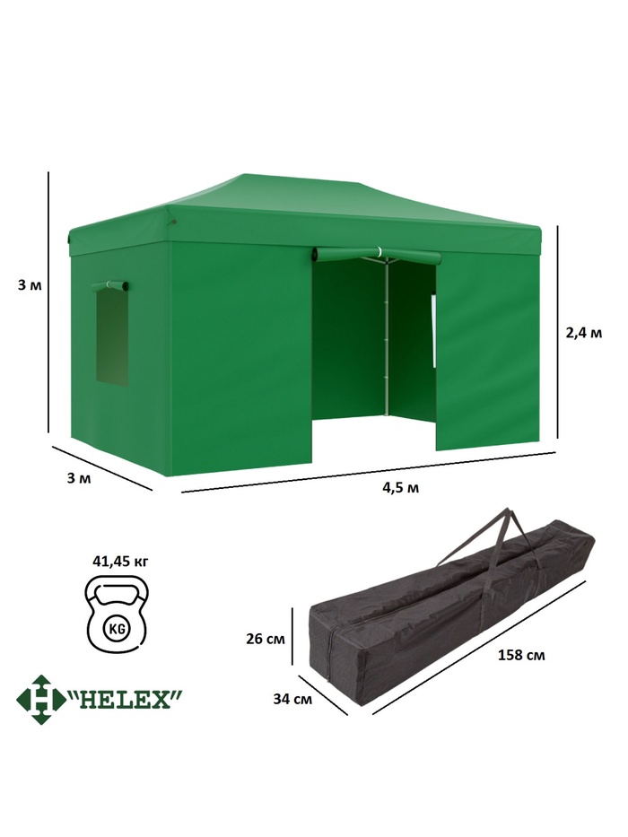 Технические характеристики Тент садовый Helex 4336 3x4.5х3м полиэстер зеленый
