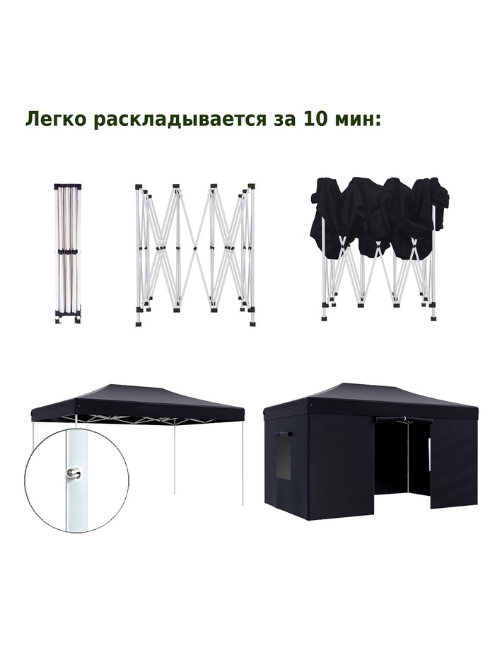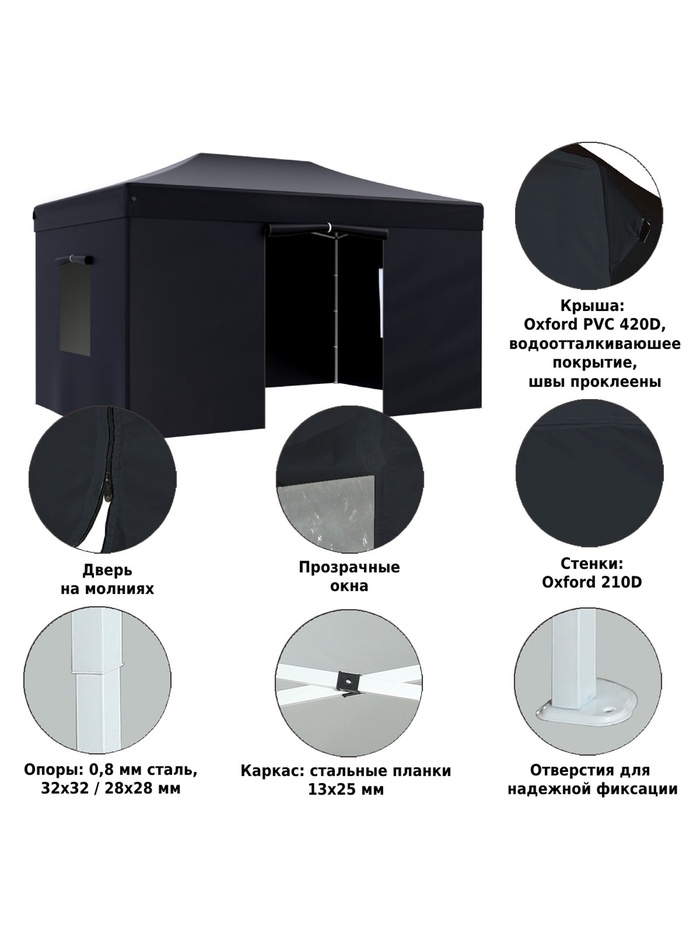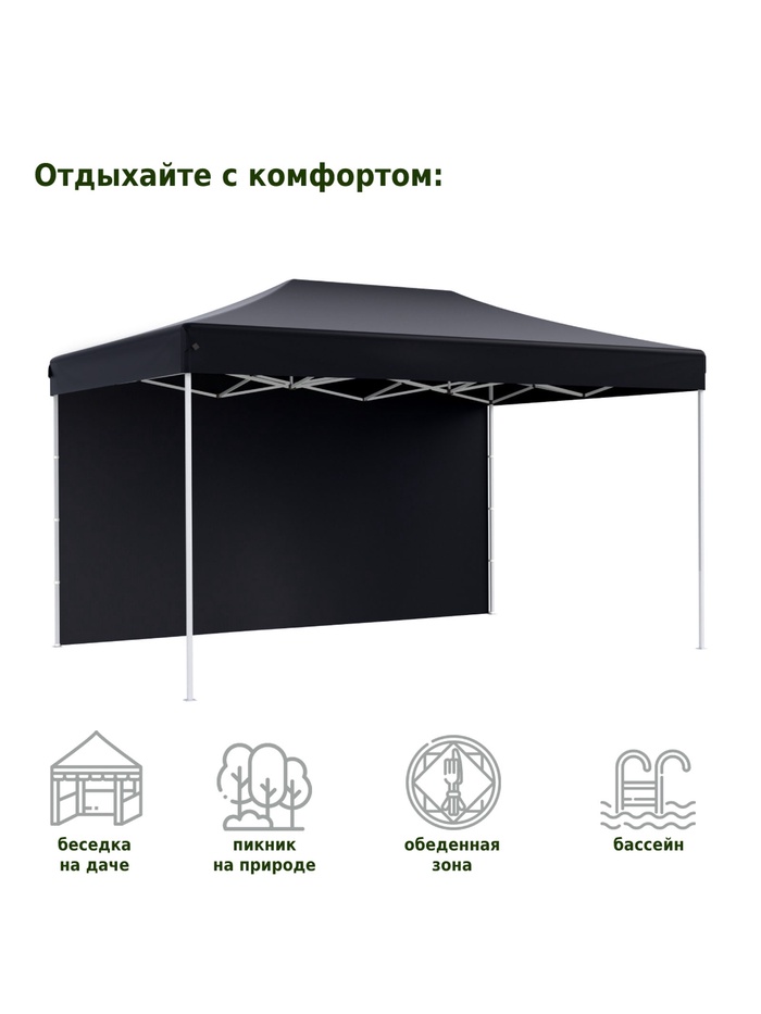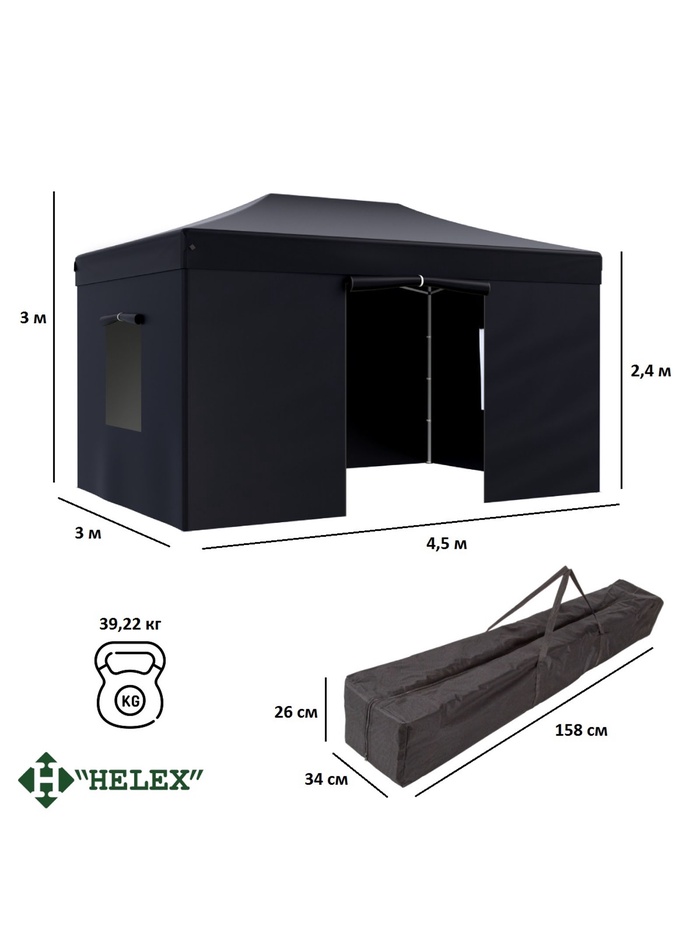 Технические характеристики Тент садовый Helex 4342 3x4.5х3м полиэстер черный