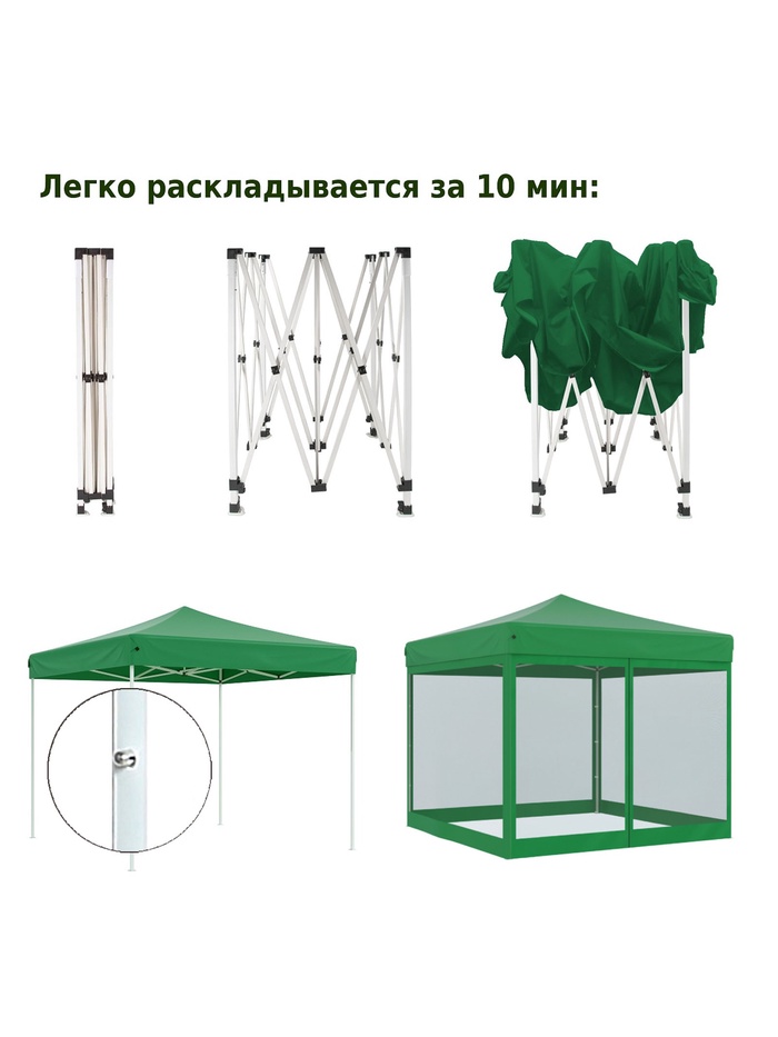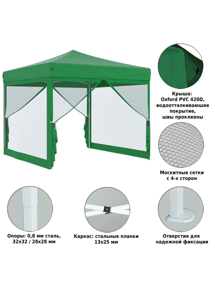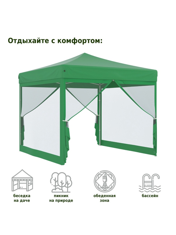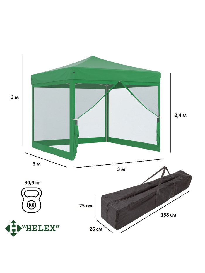 Технические характеристики Тент садовый Helex 4351 3x3х3м полиэстер зеленый
