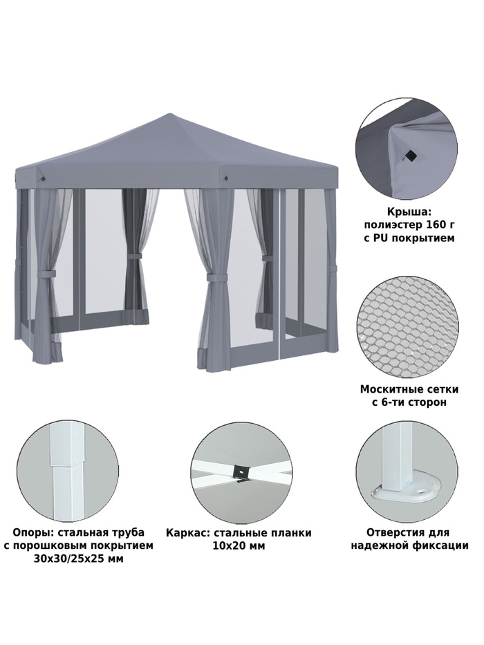 Технические характеристики Тент садовый Helex 5431 полиэстер серый