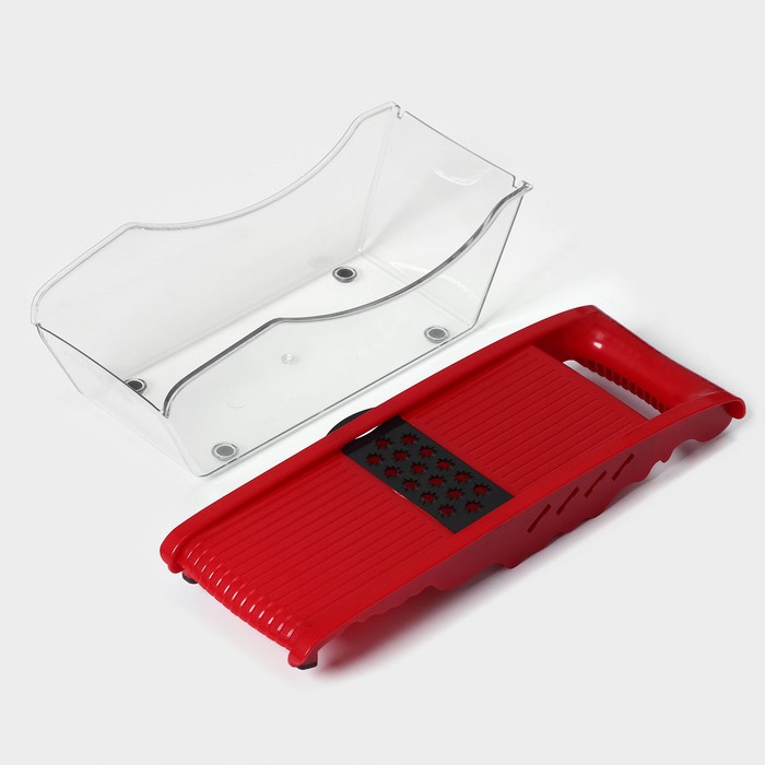 Тёрка с лотком Доляна Vegan, 6 насадок, 30×10.5×11 см, цвет зелёный, овощечистка металлическая, цвет красный