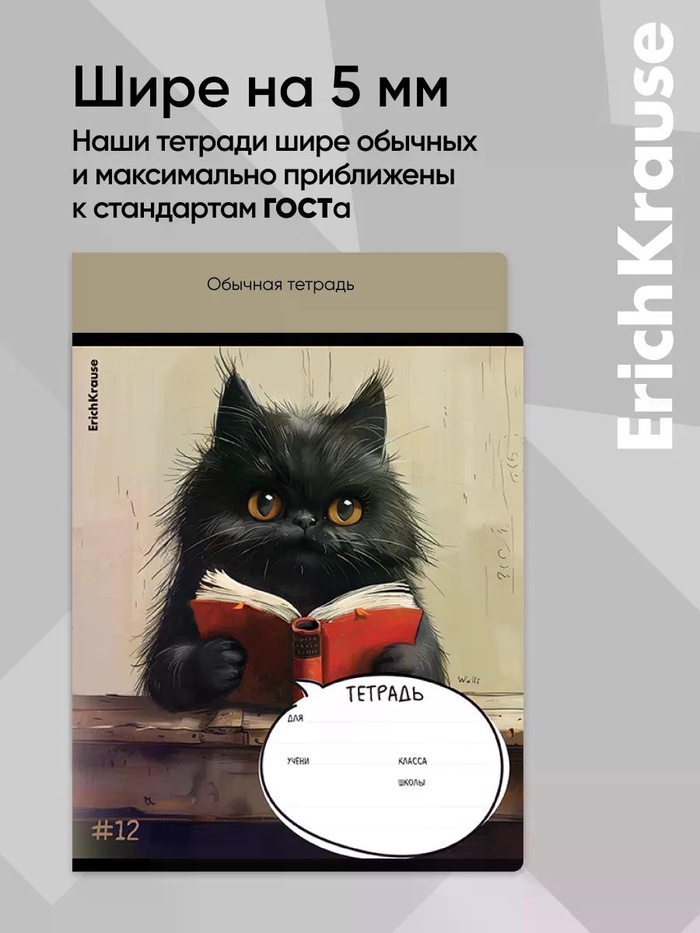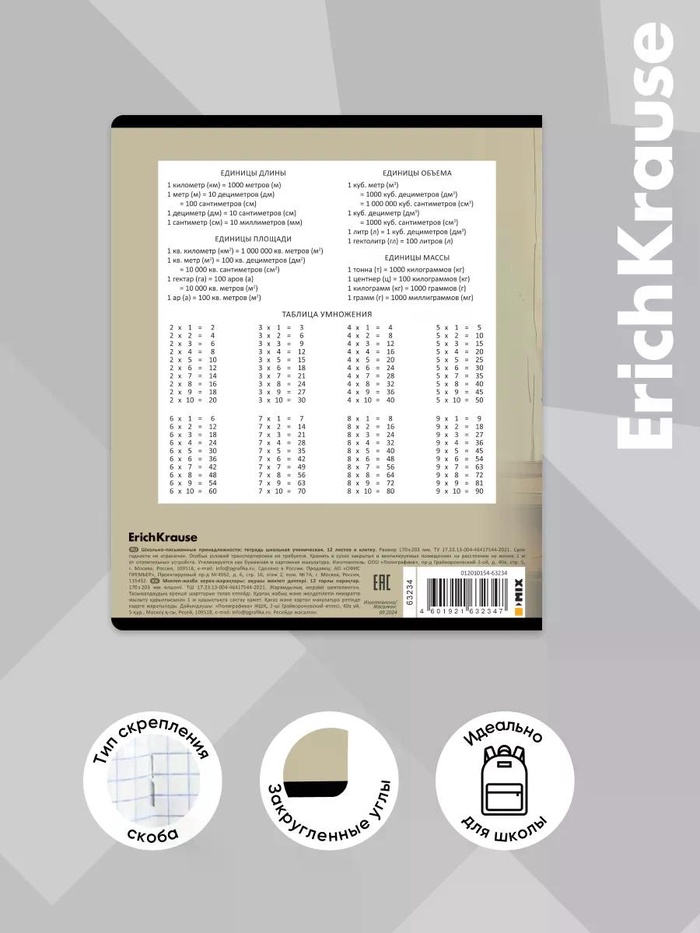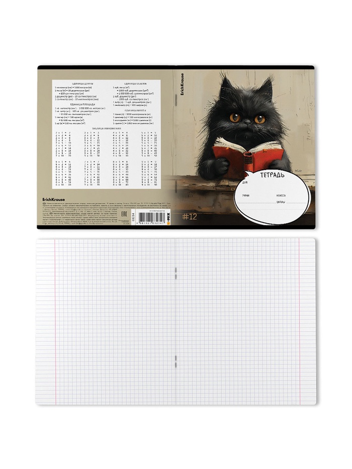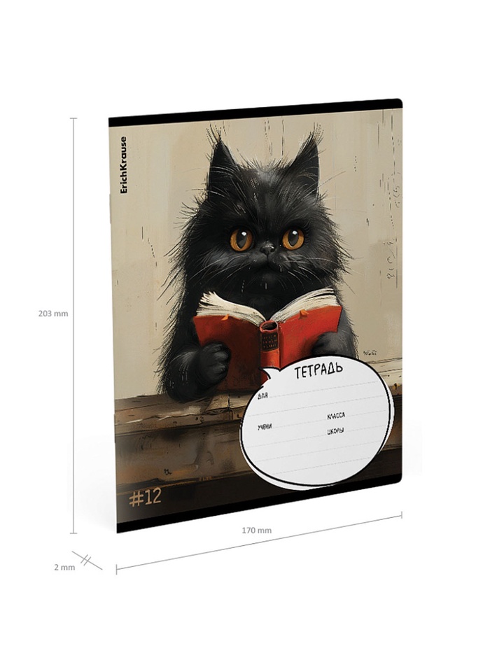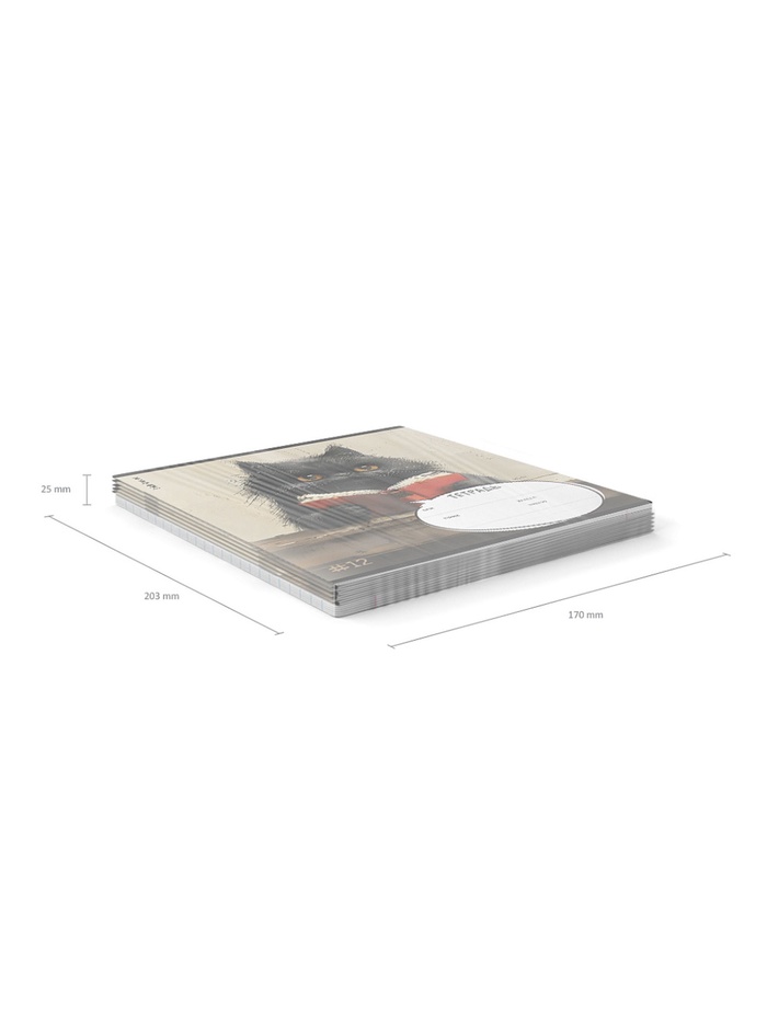 Тетрадь школьная ученическая формата А5+ (170х203 мм). Обложка из высококачественного мелованного картона плотностью 170 г/м2. В блоке 12 листов в клетку с полями. Бумага офсетная плотностью 60 г/м2. Цвет линовки - синий. Скругленные уголки обложки и блока. Тип скрепления - скоба.