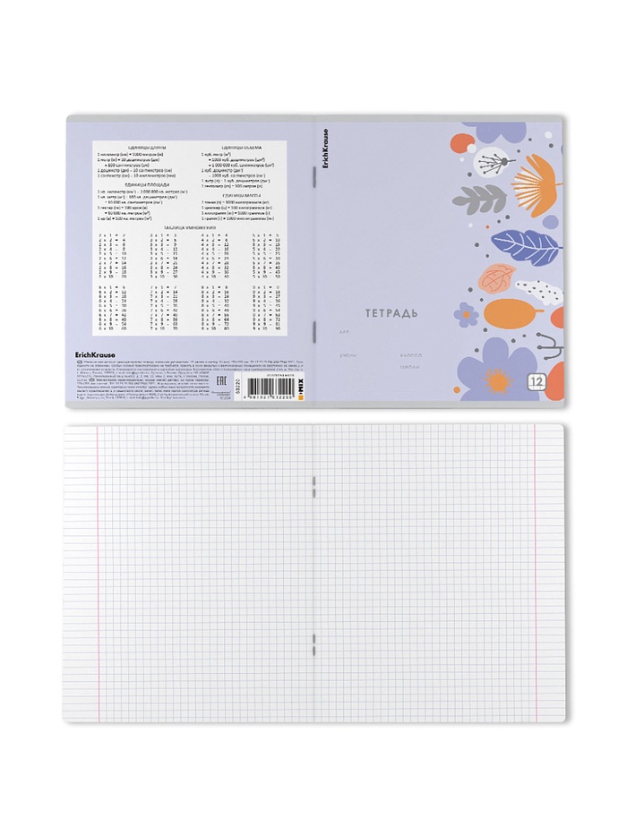 Тетрадь школьная ученическая формата А5+ (170х203 мм). Обложка из высококачественного мелованного картона плотностью 170 г/м2. В блоке 12 листов в клетку с полями. Бумага офсетная плотностью 60 г/м2. Цвет линовки - синий. Скругленные уголки обложки и блока. Тип скрепления - скоба.