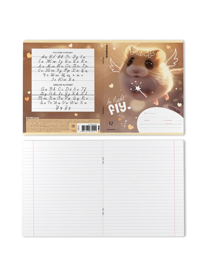 Тетрадь школьная ученическая формата А5+ (170х203 мм). Обложка из высококачественного мелованного картона плотностью 170 г/м2. В блоке 12 листов в линейку с полями. Бумага офсетная плотностью 60 г/м2. Цвет линовки - синий. Скругленные уголки обложки и блока. Тип скрепления - скоба.