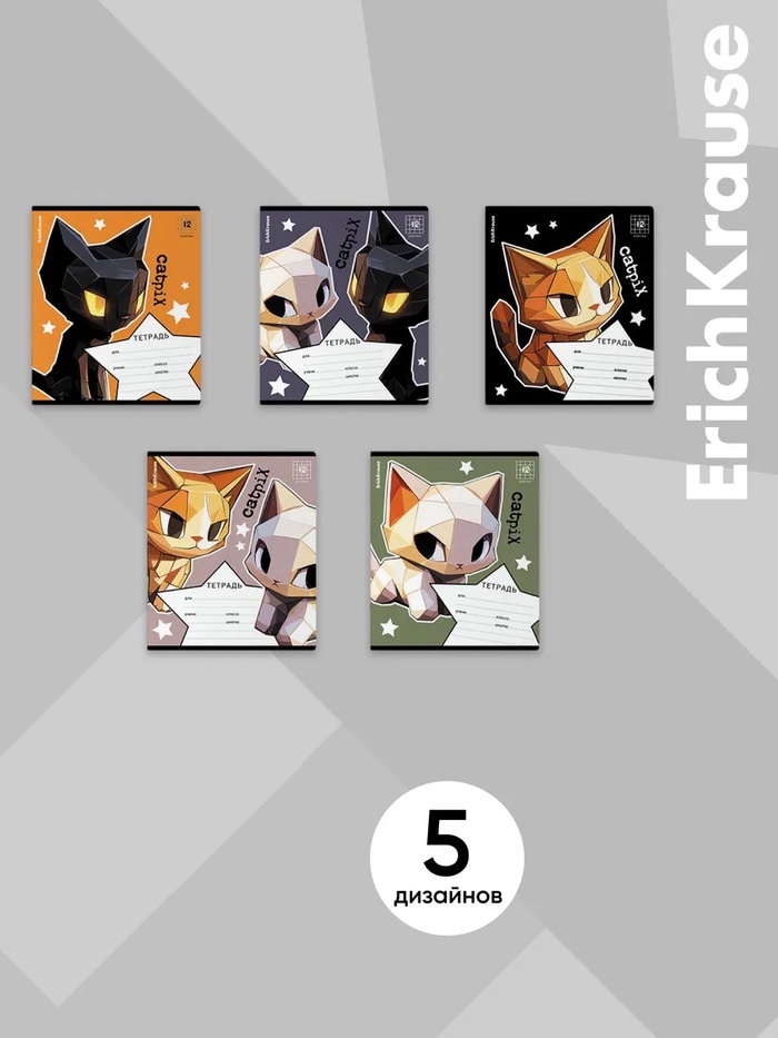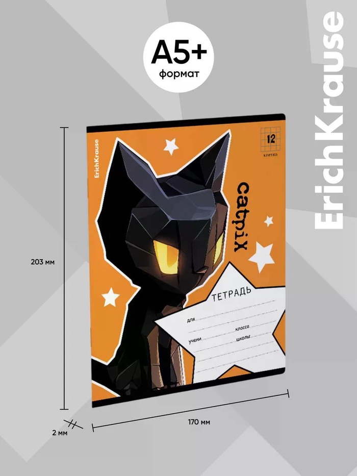 Тетрадь 2 листов в клетку ErichKrause CatPix, МИКС