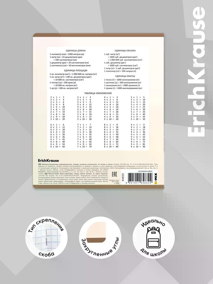 Тетрадь 12 листов в клетку ErichKrause Note Friends, МИКС