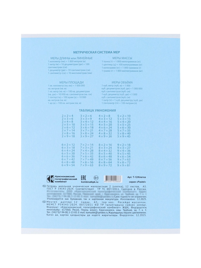 Тетрадь 12л кл КПК "Пастель", обл мел карт, блок ОФСЕТ, 5В МИКС