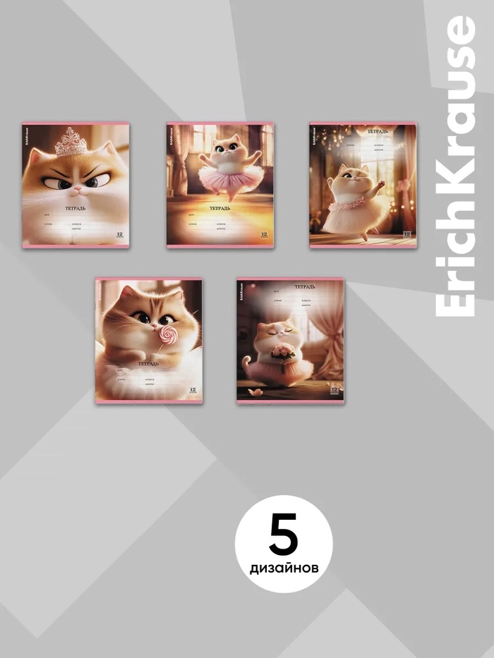 Тетрадь 12 листов в линейку ErichKrause Prima Cat, МИКС