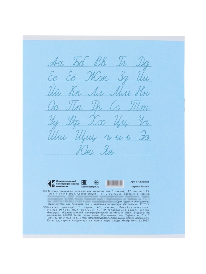 Тетрадь 12 листов в линейку, КПК «Пастель», блок офсет, 5 В, МИКС