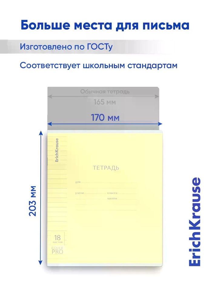 Тетрадь 18 листов в линейку ErichKrause CoverPro fizzy, жёлтая