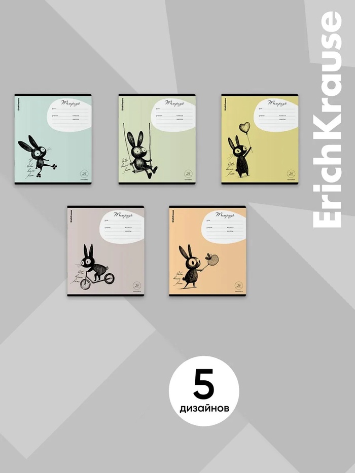 Тетрадь 24 листа в клетку ErichKrause Funny Bunny, МИКС