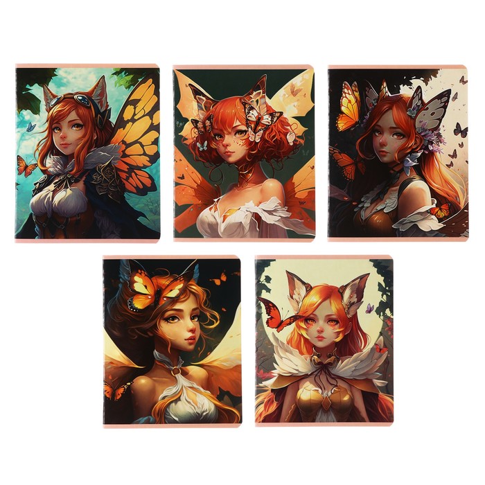 Тетрадь 48 листов в клетку Calligrata TOP «Аниме с бабочками», обложка мелованный картон, ТВИН-лак, выборочный УФ-лак, блок офсет, белизна 95%, МИКС