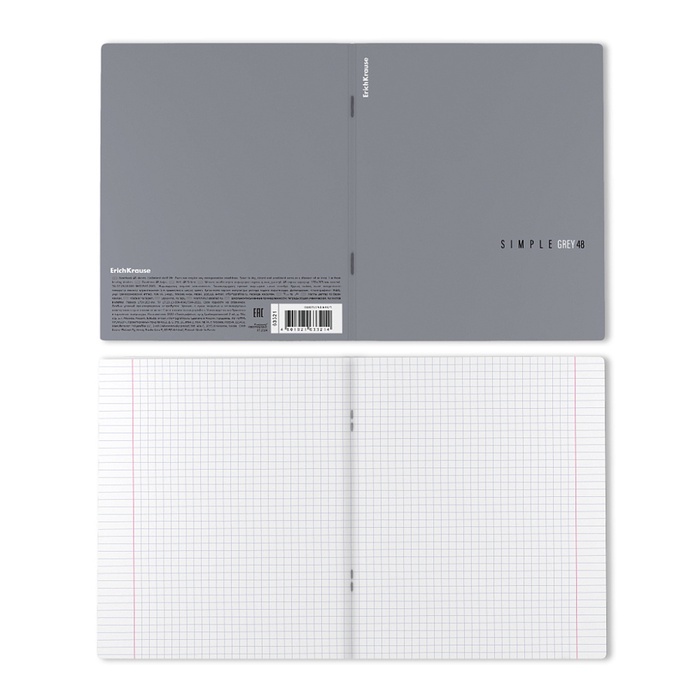 Тетрадь 48 листов в клетку, ErichKrause Simple Color, 60 г/м², серая, МИКС