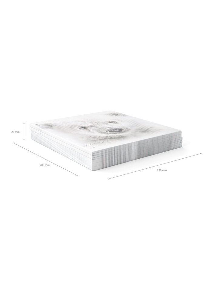 Тетрадь общая ученическая формата А5+ (170х203 мм). Обложка из высококачественного мелованного картона плотностью 190 г/м2. Отделка - soft-touch ламинация, выборочный УФ-лак. В блоке 48 листов в клетку с полями. Бумага офсетная плотностью 60 г/м2. Цвет линовки - синий. Скругленные уголки обложки и блока. Тип скрепления - скоба.