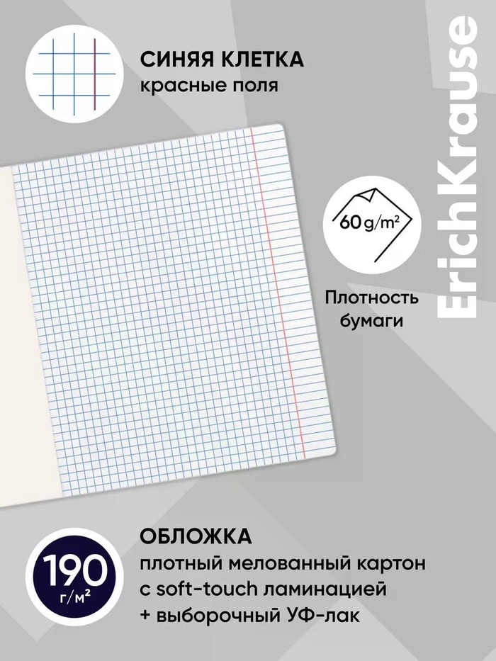 Тетрадь 48 листов в клетку ErichKrause Indigo, софт-тач, МИКС