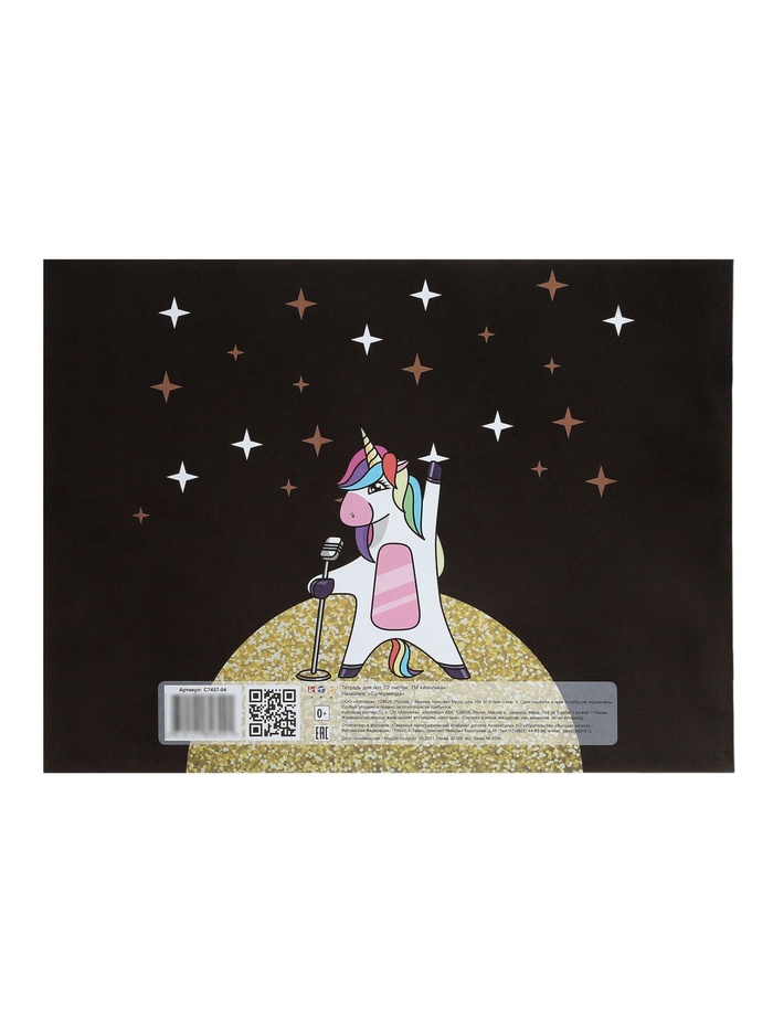 Тетрадь оформлена яркой обложкой с дизайном «Суперзвезда», что делает её привлекательной для музыкальных занятий и вдохновляет на творчество. Блок из качественной бумаги обеспечивает чёткое нанесение нотных линий и символов, а скрепление на скобе делает тетрадь удобной и прочной при частом использовании. Такой формат тетради подходит как начинающим музыкантам, так и тем, кто занимается музыкальной теорией.