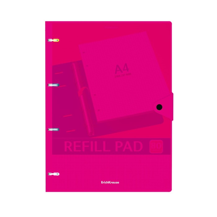 Технические характеристики Тетрадь на кольцах А4, 80 листов в клетку ErichKrause «Neon», пластиковая обложка на кнопке, блок офсет, белизна 100%, МИКС