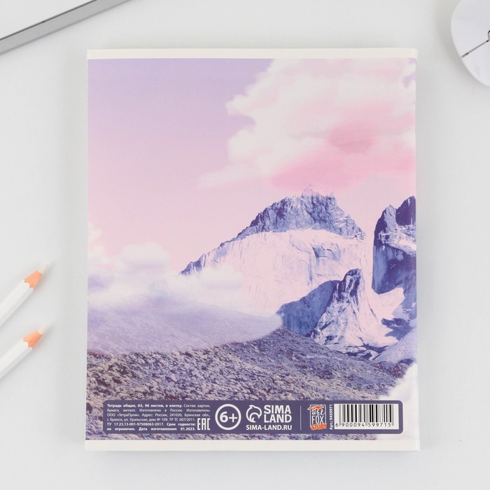 Тетрадь в клетку, 96 л., А5, на скрепке, блок №1 «Горы»