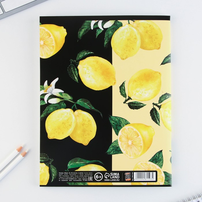 Тетрадь в клетку, А4, 96 л., на скрепке, блок №1 «Лимоны»
