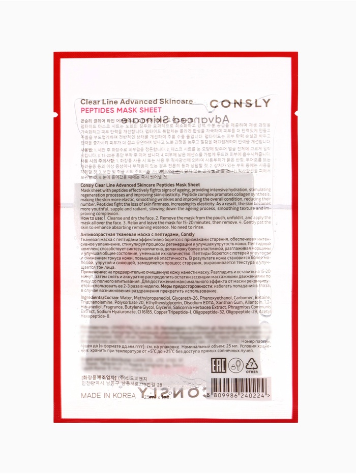 Тканевая маска с пептидами Consly « Против старения», 23 мл