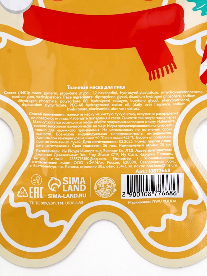 Тканевая маска для лица обновляющая, экстракт алоэ и гиалуроновая кислота, URAL LAB