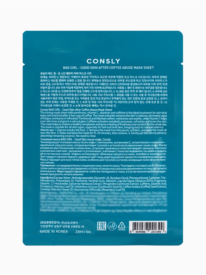 Маска Consly «После кофе» — удобное решение для быстрого тонизирования кожи и придания лицу свежего, ухоженного вида.