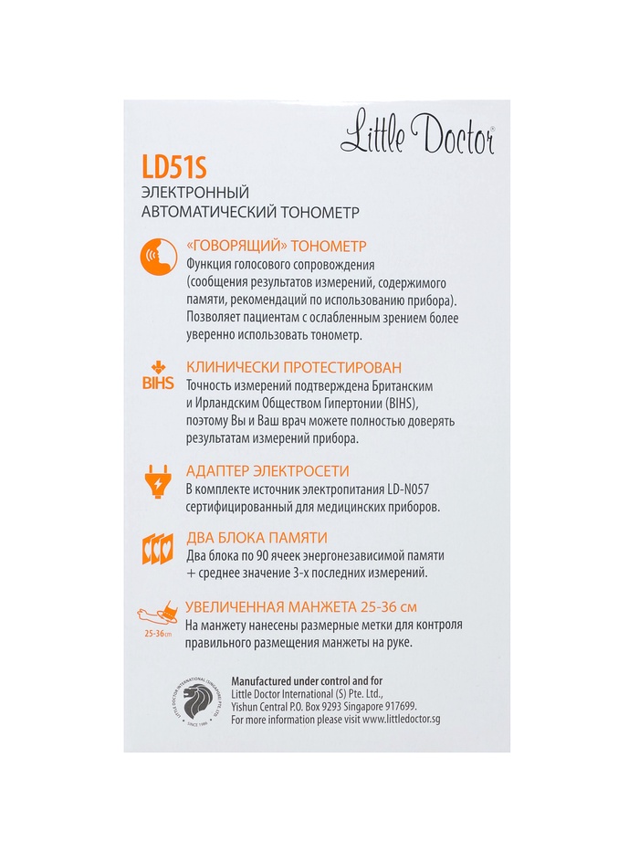 Тонометр Little Doctor LD 51S, автомат, голосовое сопровождение, манжета 25-36 см, с адаптером