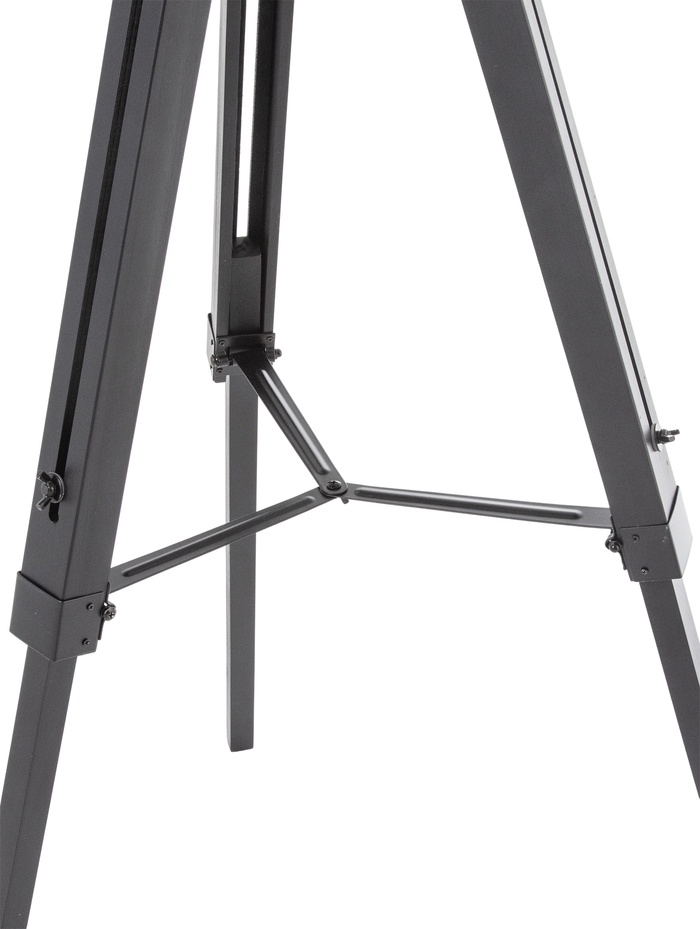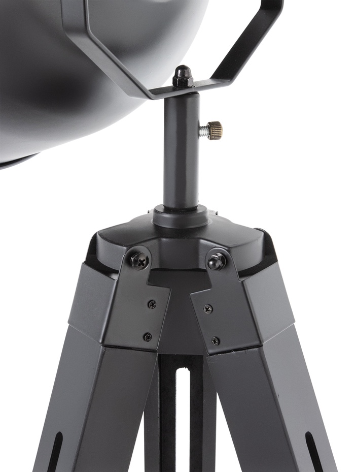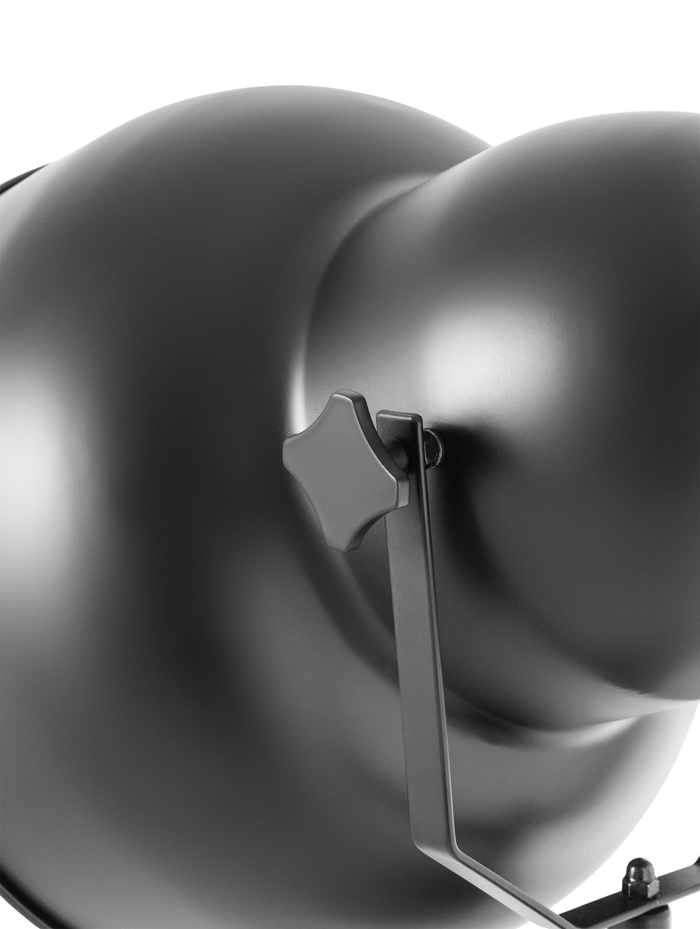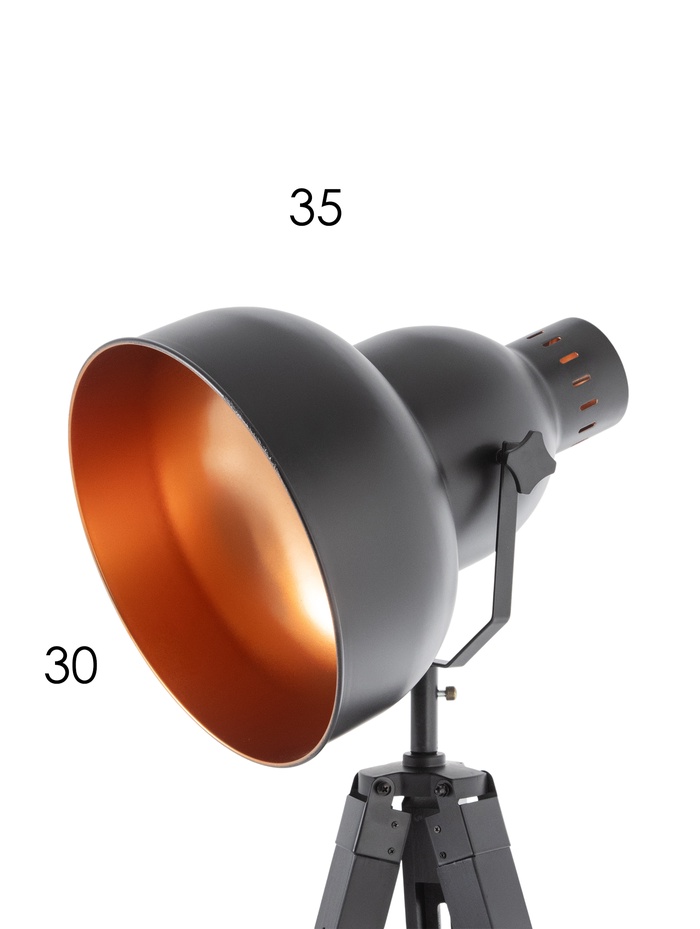 Напольный торшер в формате прожектора на устойчивой треноге — выразительный элемент интерьера в современном и лофт стиле. Контраст чёрного корпуса и медных акцентов формирует характерный индустриальный образ, который органично смотрится как в просторной гостиной, так и в креативном пространстве с кирпичной кладкой или бетонными фактурами. Высота 148 см позволяет создать направленный, комфортный световой акцент без перегрузки общего освещения.